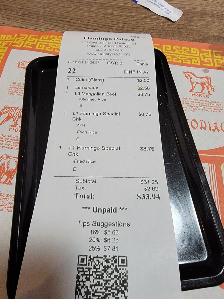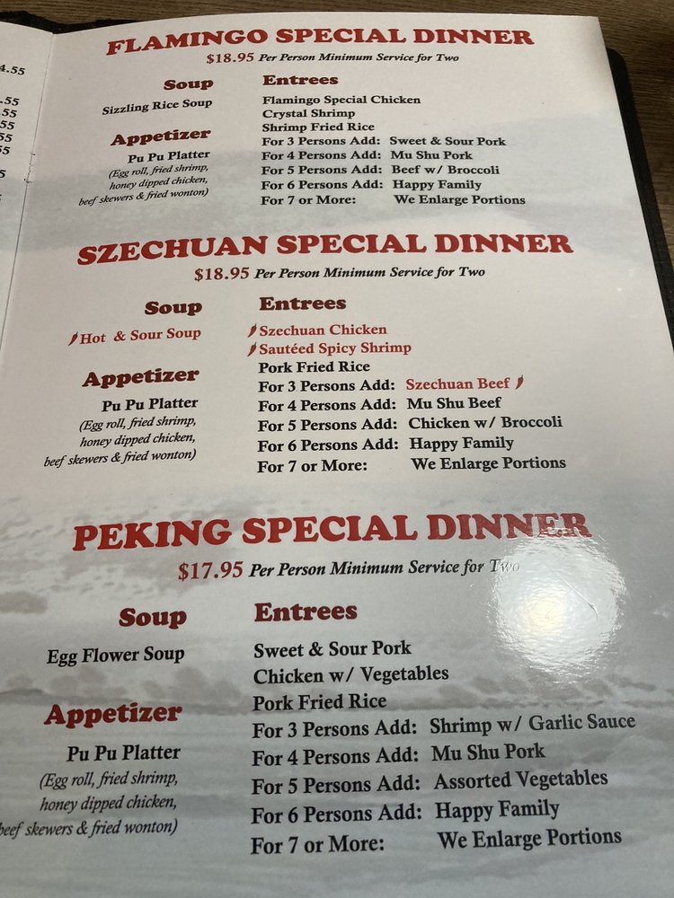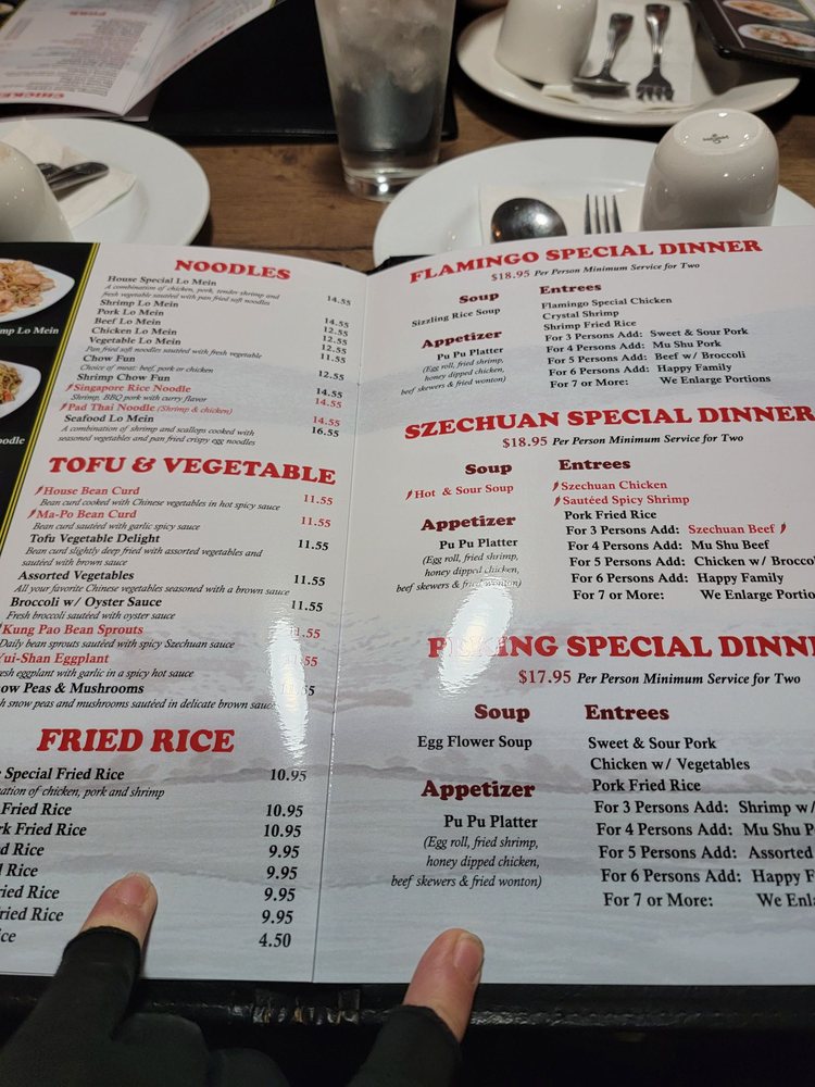 Flamingo Palace is a Chinese restaurant located in Phoenix, AZ. Known for its attentive service and delicious food, it offers a variety of vegan and vegetarian options. Customers praise the generous portions and flavorful dishes, such as the orange chicken, sweet & sour chicken, and pork lo mein. The lunch special is a popular choice, providing great value for quality Chinese cuisine. The restaurant's signature Flamingo Special Chicken is a standout, with a unique and tasty sauce that customers love to indulge in. With a casual and welcoming atmosphere, Flamingo Palace is a go-to spot for families, groups, and anyone craving authentic Chinese flavors. Whether dining in or taking out, this restaurant promises a satisfying experience for all.